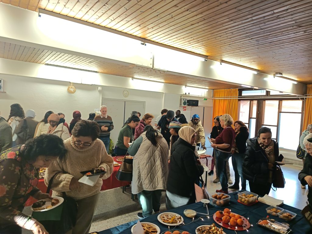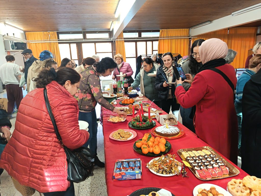 Au traditionnel goûter de Noël, les apprenants ont généreusement apportés de nombreux mets succulents, spécialités de leur pays. Ce fut l’occasion d’échanges chaleureux dans la bonne humeur.